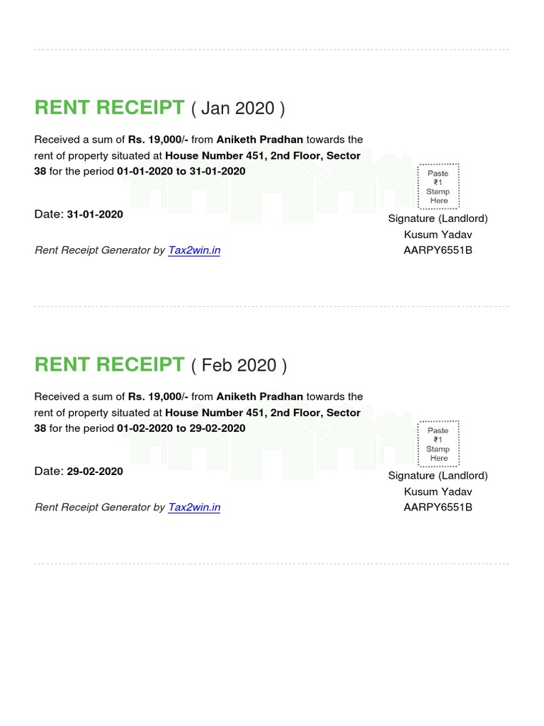 Tax2Win Rent Receipt - Keep your own rent receipt from the condo company as proof you paid $1,000.